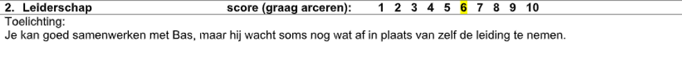 Als ik terugkijk op mijn ontwikkeling in leiderschap, zie ik dat ik zelfstandiger, gestructureerder en duidelijker ben geworden. Ik moet dit alleen meer uitstralen in de communicatie naar mijn collega's. Iets meer op de voorgrond treden en laten zien dat ik er verstand van heb en ik echt aan dingen werk die een aanwinst zijn. In plaats van veel vragen, moet ik zelf vaker het initiatief nemen. Dit heb ik geprobeerd te doen, maar kwam er dus nog niet helemaal uit zoals ik had gehoopt.